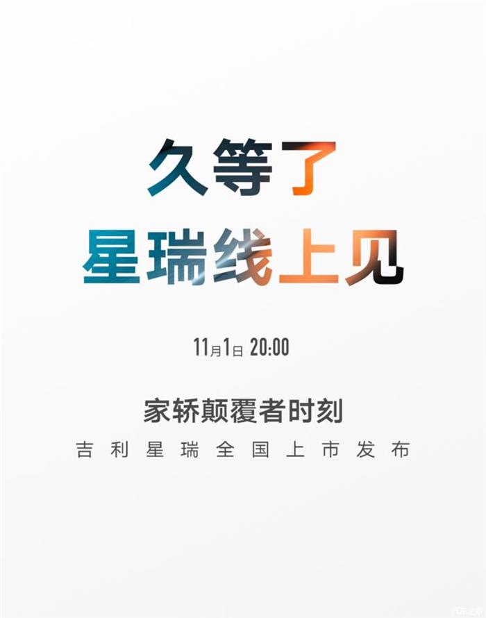 2.0T+7DCT 吉利星瑞将于11月1日上市